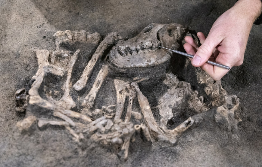 Τα λείψανα ενός σκύλου από την Εποχή του Λίθου και του αφέντη του βρέθηκαν θαμμένα μαζί σε αρχαιολογική ανασκαφή στη Σουηδία, με τις πρώτες εικόνες να αποκαλύπτουν ευκρινώς τα οστά του ζώου.