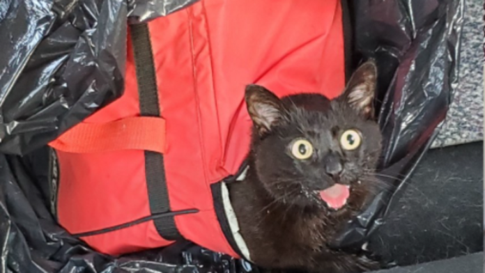 Μια γυναίκα είχε βγάλει βόλτα το χάσκι της, Κόντα, όταν ο σκύλος άρχισε να την τραβάει προς το μέρος από ένα κόκκινο φορητό ψυγειάκι, που βρισκόταν μέσα σε μια πλαστική σακούλα. Μην μπορώντας να σταματήσει την Κόντα από το να μυρίζει την σακούλα, αποφάσισε να την ανοίξει. Προς έκπληξή της, η σακούλα περιείχε μια μαύρη γάτα- και ήταν ζωντανή.