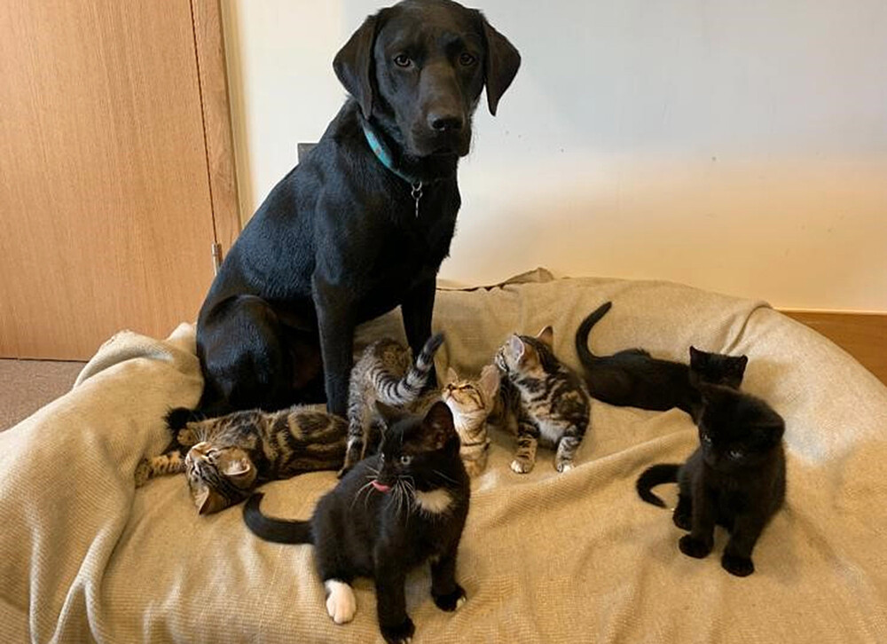 Ο Μπέρτι, ένα Λαμπραντόρ Ριτρίβερ που ζει σε καταφύγιο ζώων, πήρε αμέσως τα νεογέννητα γατάκια υπό την προστασία του