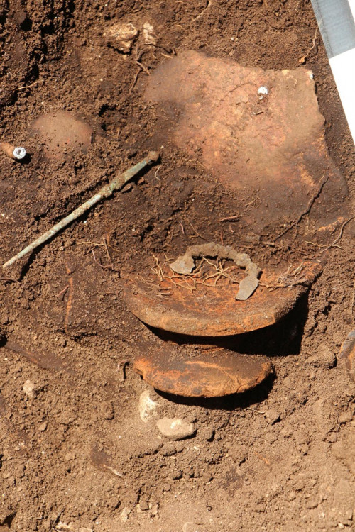 Σύμφωνα με ένα άρθρο στο Δίκτυο Ειδήσεων Αρχαιολογίας, μεταξύ των άλλων αντικειμένων που ανακαλύφθηκαν στον τάφο ήταν «δεκαπέντε χάλκινες και ασημένιες αγκράφες, 12 βελόνες, διάφορα σπειροειδή χάλκινα στολίδια και τσιμπιδάκια και αρκετές εκατοντάδες γυάλινα διακοσμητικά και κεχριμπάρια που ανήκουν σε περιδέραια».