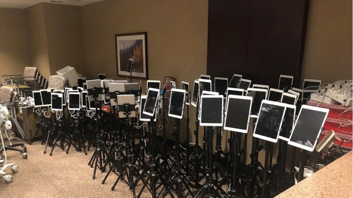 Σε δεύτερη φάση και μόλις ξέσπασε η πανδημία, στο νοσοκομείο, συνδύασαν tablets με κάμερες και μέσω ειδικής εφαρμογής νοσοκόμες και γιατροί μπορούσαν από μακρυά να παρακολουθούν συνέχεια τους ασθενείς με Covid 19, μειώνοντας στο ελάχιστο τις επαφές με αυτούς. Τα tablets πάνω στα τρίποδα που βλέπουμε στη φωτογραφία του twitter τοποθετούνται στα δωμάτια εντατικής των ασθενών με Covid 19 έτσι ώστε γιατροί και νοσοκόμες τους παρακολουθούν από μακρυά, ωστε να ελαχιστοποιήσουν τον κίνδυνο μόλυνσης.