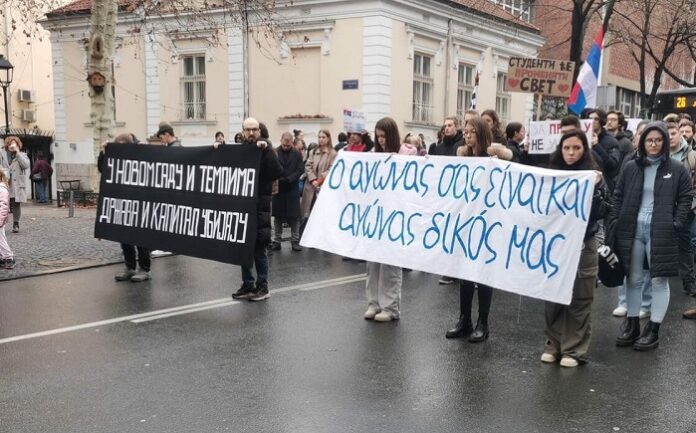 Σέρβοι φοιτητές πραγματοποίησαν πορεία στο Βελιγράδι, από την Φιλοσοφική σχολή μέχρι την ελληνική πρεσβεία