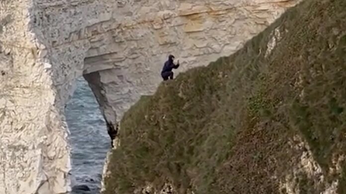 Ένας νεαρός τουρίστας κινδύνευσε να χάσει τη ζωή του ενώ έβγαζε φωτογραφία στην άκρη ενός γκρεμού ύψους 120 μέτρων στα Old Harry Rocks, κοντά στο Swanage, στο Dorset της Βρετανίας.