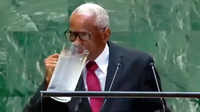 Ο μεταβατικός πρόεδρος της Αϊτής, φαίνεται πως… μπερδεύτηκε μιλώντας στη Γενική Συνελεύση του ΟΗΕ και αντί να πιεί νερό από το ποτήρι που έχουν στη διάθεσή τους οι ομιλητές που βρίσκονται στο βήμα, ήπιε από ολόκληρη τη κανάτα.