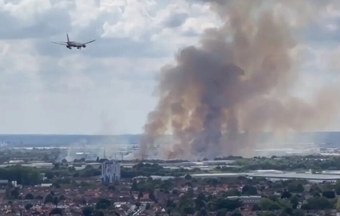 Μεγάλη φωτιά έχει ξεσπάσει κοντά στο αεροδρόμιο Χίθροου στη Βρετανία.