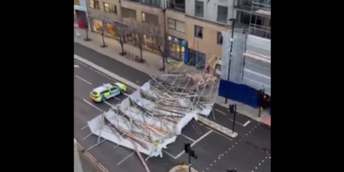 This is the moment Storm Henk tore down scaffolding in London 🌬