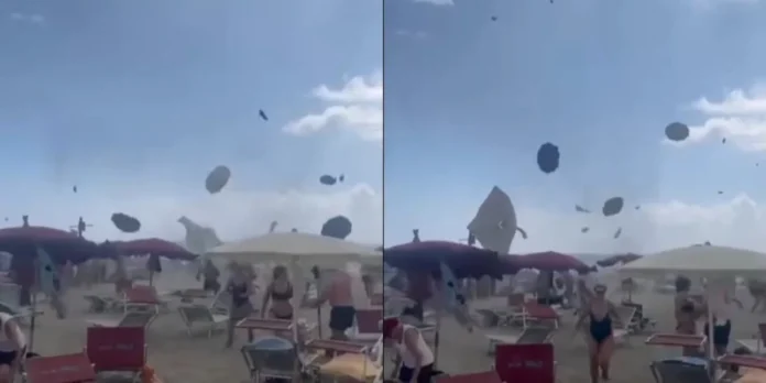 Πανικός προκλήθηκε χθες σε παραλία της Ιταλίας όταν ένας ξαφνικός ανεμοστρόβιλος σάρωσε τα πάντα στο πέρασμά του.