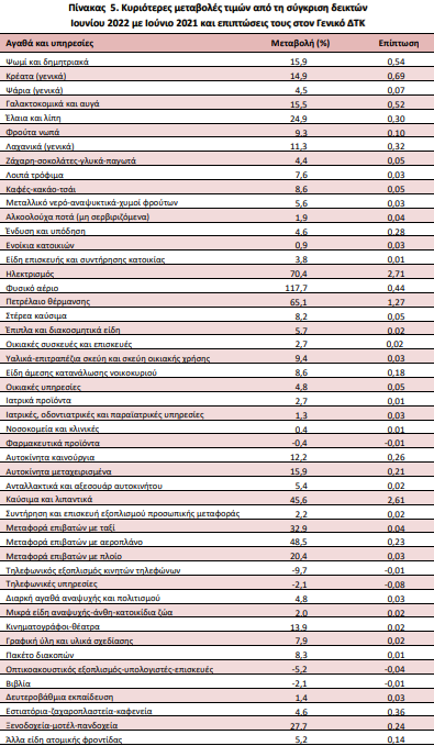 Τους προηγούμενους 12 μήνες, από τον Ιούλιο του 2021 έως τον Ιούνιο του 2022, οι τιμές αυξήθηκαν κατά 6,3%. Την αντίστοιχη περίοδο από τον Ιούλιο του 2020 έως τον Ιούνιο του 2021, είχε καταγραφεί αρνητικός ρυθμός 1,3%.