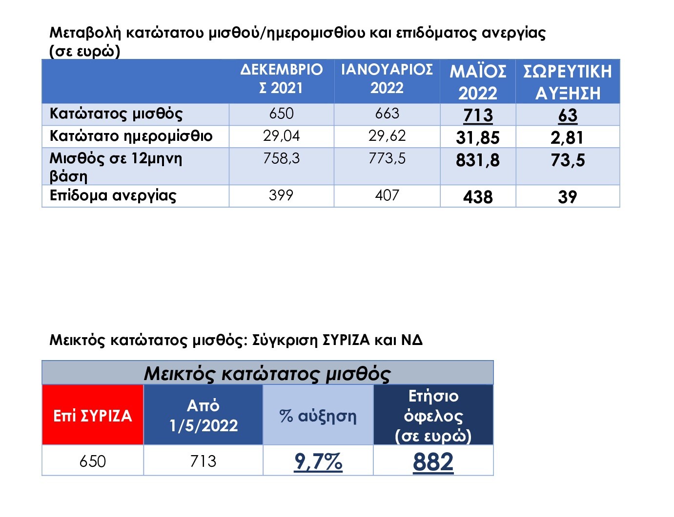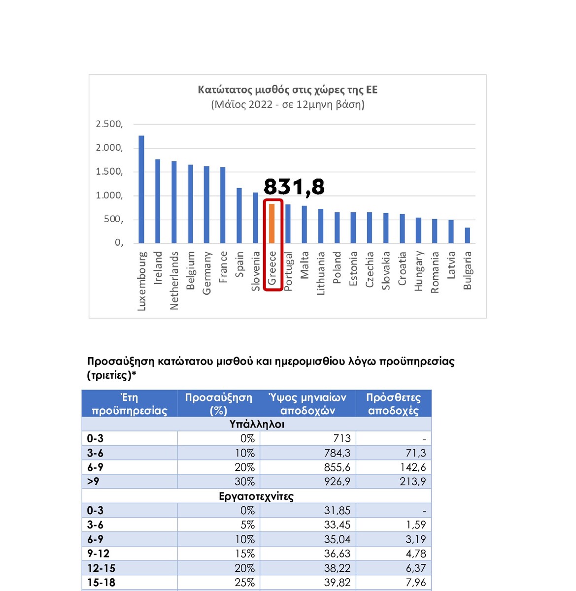 Αναλυτικοί πίνακες για τη διαμόρφωση του κατώτατου μισθού