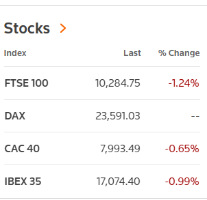 Την ίδια ώρα στην Ευρώπη, η αγορά του Λονδίνου άνοιξε με πτώση 1,24%, και απώλειες κάτω του 1% αναφέρει ο δείκτης στο γαλλικό και ισπανικό χρηματιστήριο.