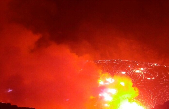 Ο κρατήρας στην κορυφή του Kilauea γέμισε με καυτή κόκκινη λάβα και ο ουρανός χάθηκε μέσα σε μία ηφαιστειακή αιθαλομίχλη όπως ανακοίνωσε το Αμερικανικό Γεωλογικό Ινστιτούτο.