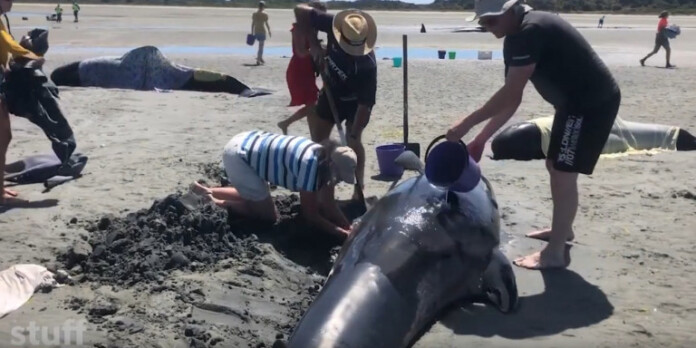 «Ειδικοί στα θαλάσσια θηλαστικά θα μετάσχουν στις επιχειρήσεις για να ξαναβγούν στη θάλασσα και για την φροντίδα τους στην ακτή, έχοντας στόχο να τις κρατήσουν σε ένα δροσερό περιβάλλον με υγρασίας», εξήγησε εκπρόσωπος του DOC.