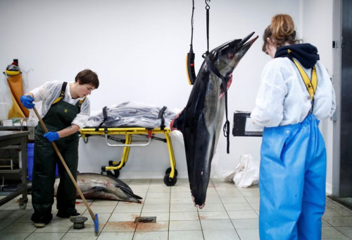 Από τις νεκροτομές που έχουν διενεργηθεί προκύπτει ότι κάποια από τα ζώα έφεραν κατάγματα, είχαν σπασμένες ουρές και πτερύγια, αλλά και βαθιές τομές στο δέρμα τους από τα δίχτυα.
