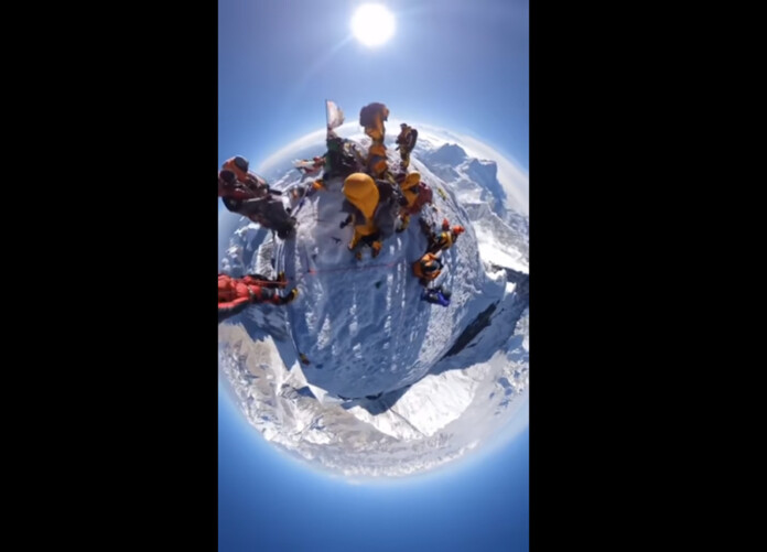 Η ομάδα των ορειβατών κατάφερε να φτάσει στο ψηλότερο σημείο του πλανήτη, σε υψόμετρο 8.848 μέτρων και χρησιμοποιώντας μία κάμερα 360 μοιρών, τράβηξε πλάνα από το πως φαίνεται η Γη από ψηλά.