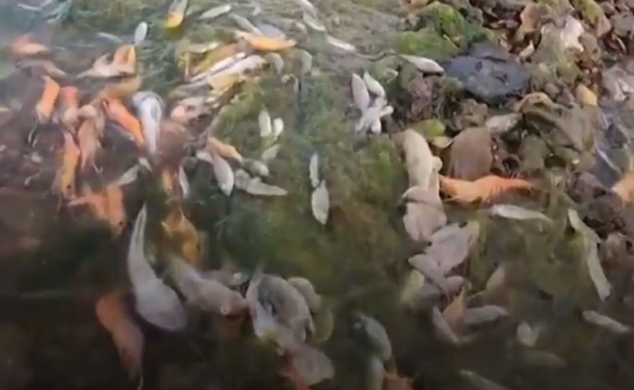 Τα ψάρια πεθαίνουν εξαιτίας έλλειψης οξυγόνου, καθώς φύκια καλύπτουν την επιφάνεια του νερού. Η αιτία είναι η εκροή λιπασμάτων από αγροτικές περιοχές.