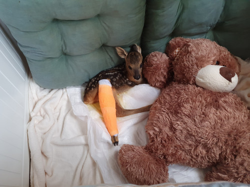 Μόλις λίγων ημερών ζαρκάδι, με κομμάτια ακόμη στο σώμα του από τον ομφάλιο λώρο, βρέθηκε με σπασμένο το πόδι στο Πάικο και μεταφέρθηκε άμεσα σε εγκαταστάσεις του «Αρκτούρου», καθώς οι πιθανότητες, για ένα άγριο ζώο, επιβίωσης στο δάσος με τέτοιο τραυματισμό, είναι μηδαμινές.