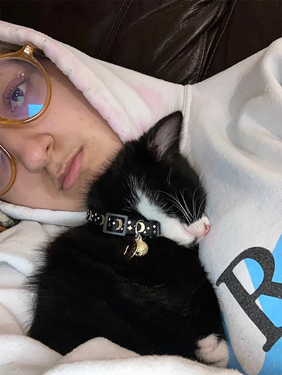 «Εργάζομαι ως stage manager και ένιωθα μεγάλο άγχος στο πρώτο lockdown, όταν έκλεισαν τα θέατρα. Δεν έβλεπα ένα τέλος στο lockdown και ένιωθα ότι είχα πέσει πραγματικά», λέει και προσθέτει ότι η απόκτηση του γάτου «μου έδωσε έναν λόγο να σηκωθώ από το κρεβάτι. Έχει μεγάλη αίσθηση της διασκέδασης και οι συγκάτοικοί μου επίσης τον λατρεύουν».