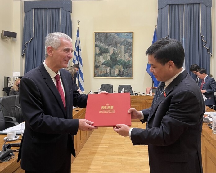Στη συνάντηση μετείχαν επίσης ο Α’ Αντιπροέδρος της Βουλής, Νικ. Κακλαμάνης και ο Προέδρος της Κοινοβουλευτικής Ομάδας Φιλίας Ελλάδας-Βιετνάμ, Χρ. Ταραντίλης.