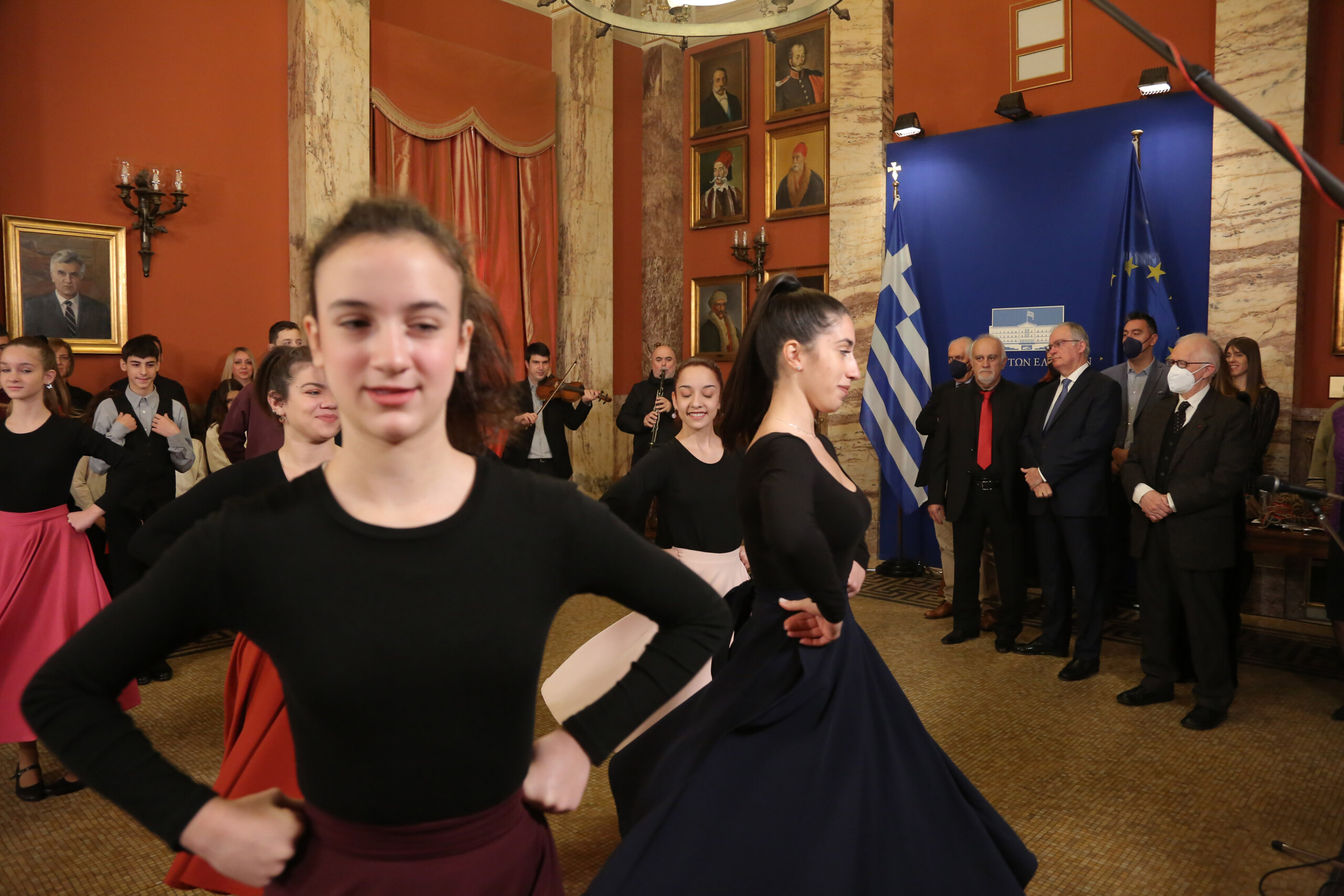 Παιδικές φωνές και χαμόγελα, παραδοσιακά κάλαντα και χοροί, μαζί με ευχές για υγεία και ευημερία, συνέθεσαν το χριστουγεννιάτικο σκηνικό στο Κοινοβούλιο.