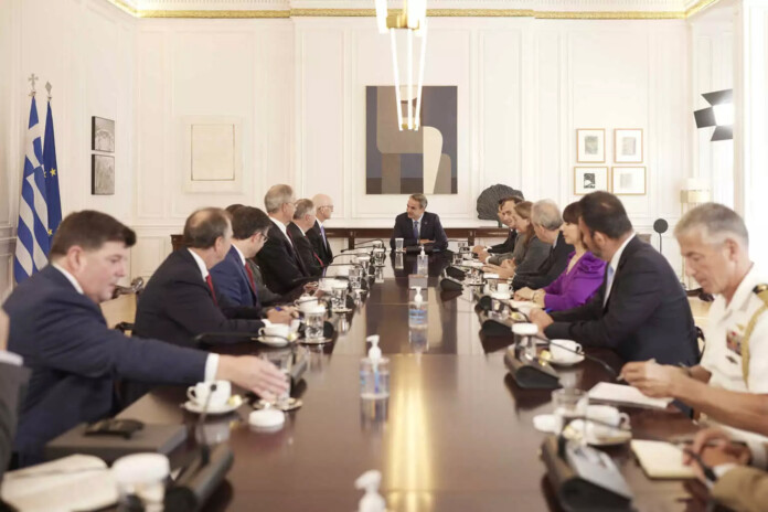 Για την επιθετική ρητορική και προκλητικότητα της Τουρκίας ενημέρωσε ο πρωθυπουργός Κυριάκος Μητσοτάκης τη διακομματική αντιπροσωπεία της Βουλής των Αντιπροσώπων των ΗΠΑ, κατά τη συνάντηση τους στο Μέγαρο Μαξίμου.
