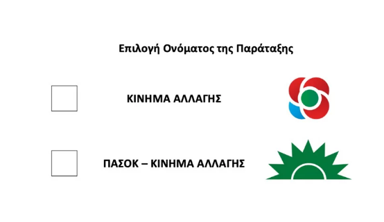 Οπως φαίνεται και στο ψηφοδέλτιο η πρώτη ονομασία έχει το σήμα αυτό του ΚΙΝΑΛ, ενώ η δεύτερη έχει τον ιστορικό πράσινο ήλιο του ΠΑΣΟΚ. Ο Νίκος Ανδρουλάκης μιλώντας πρόσφατα σε κομματική εκδήλωση στην Πάτρα, είχε τονίσει: «Το όνομα της παράταξης που θα κατέβουμε στις βουλευτικές εκλογές θα το υπογράψουν με την ψήφο τους τα χιλιάδες μέλη μας που θα συμμετέχουν στη διαδικασία της 8ης Μαΐου».