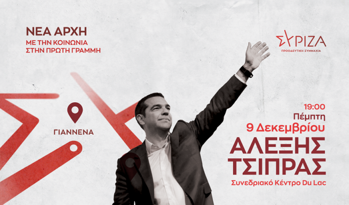 Ο αρχηγός της αξιωματικής αντιπολίτευσης, Πρόεδρος του ΣΥΡΙΖΑ-Π.Σ Αλέξης Τσίπρας θα επισκεφθεί την Ήπειρο την Πέμπτη 9 Δεκεμβρίου, με αποκορύφωμα την κεντρική του ομιλία στο ξενοδοχείο Du Lac των Ιωαννίνων στις 7 το απόγευμα.