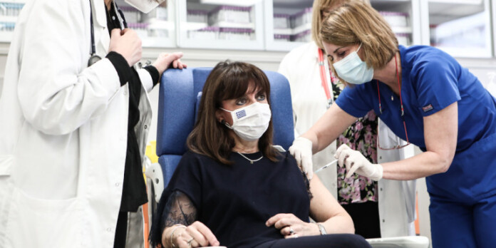 Μετά τον Κυριάκο Μητσοτάκη και η Κατερίνα Σακελλαροπούλου έκανε τη δεύτερη δόση για το εμβόλιο του κορωνοϊού το πρωί της Δευτέρας.