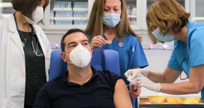 Εμβολιάστηκε ο πρόεδρος του ΣΥΡΙΖΑ που ζήτησε ενίσχυση του ΕΣΥ, προστασία των ευπαθών ομάδων και διεξαγωγή μαζικών δωρεάν τεστ, ταυτόχρονα με το πρόγραμμα εμβολιασμού.