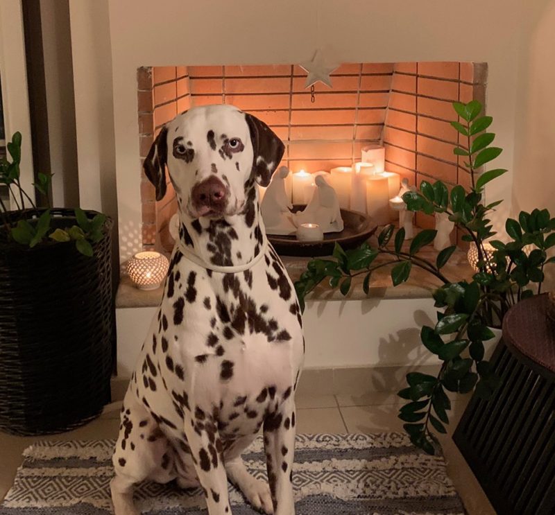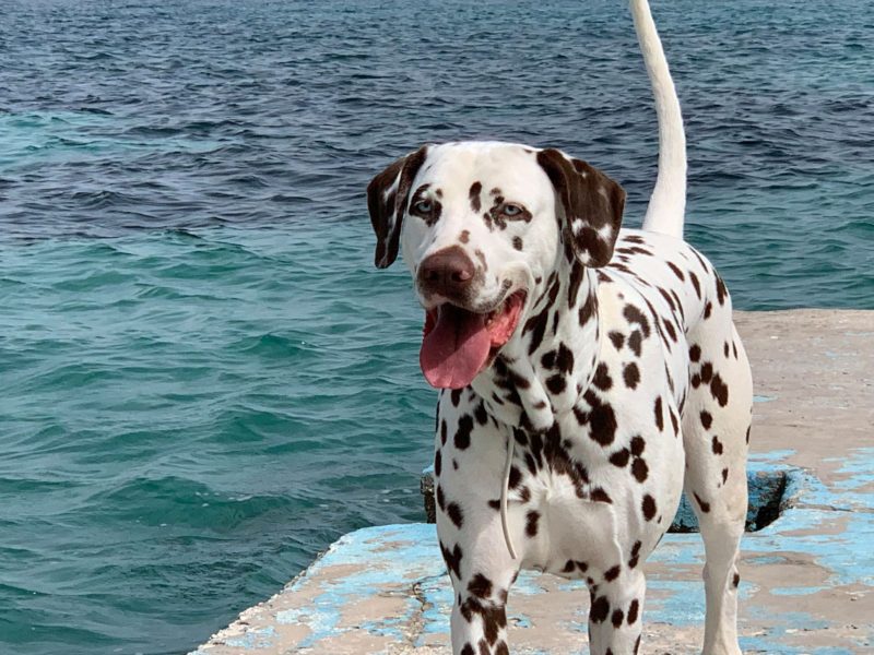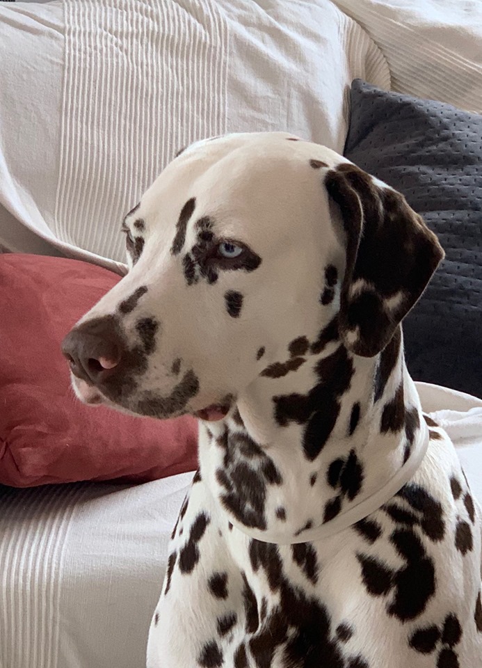 *Είναι Δαλματίας. Με καφέ βούλες και γαλάζια μάτια.