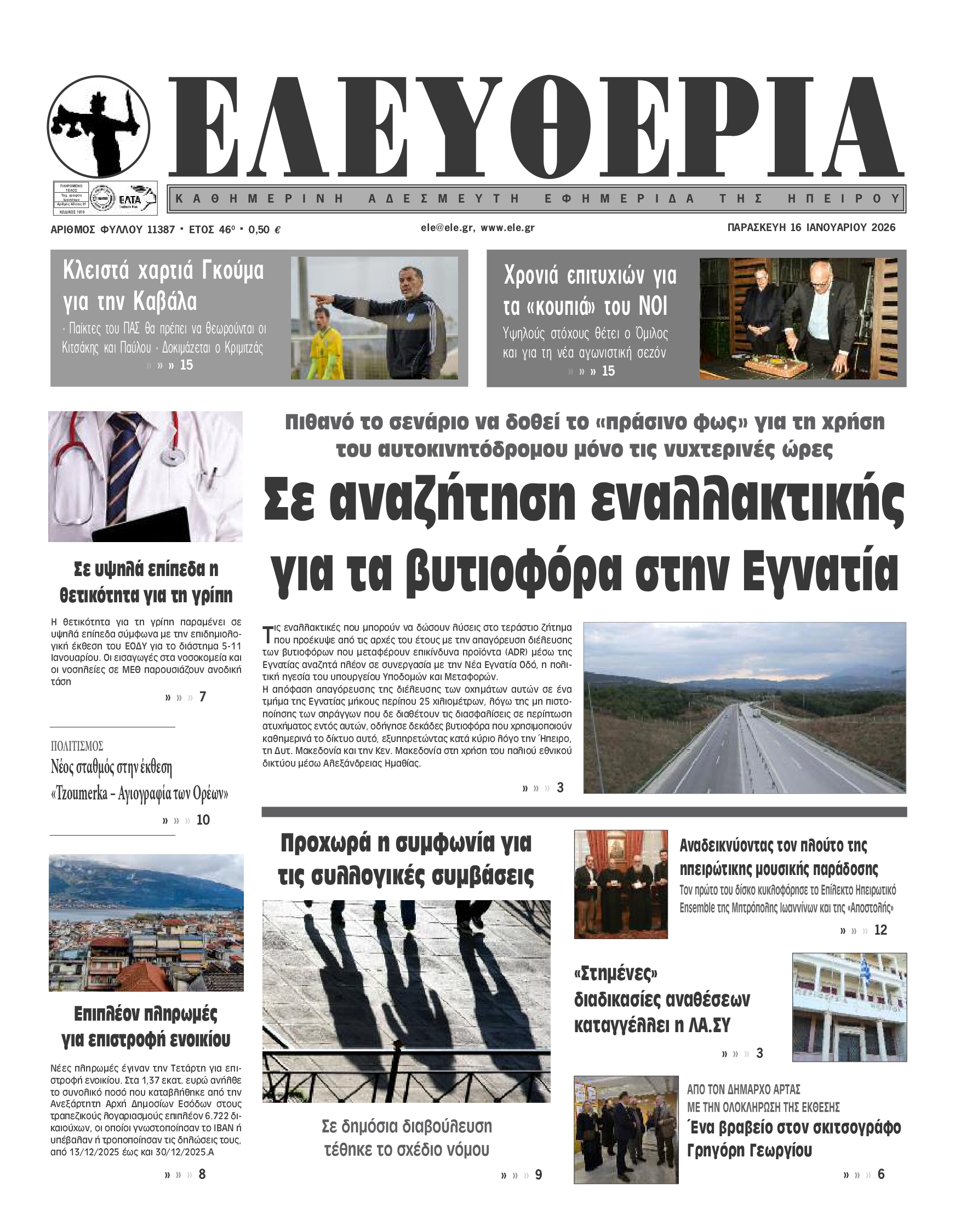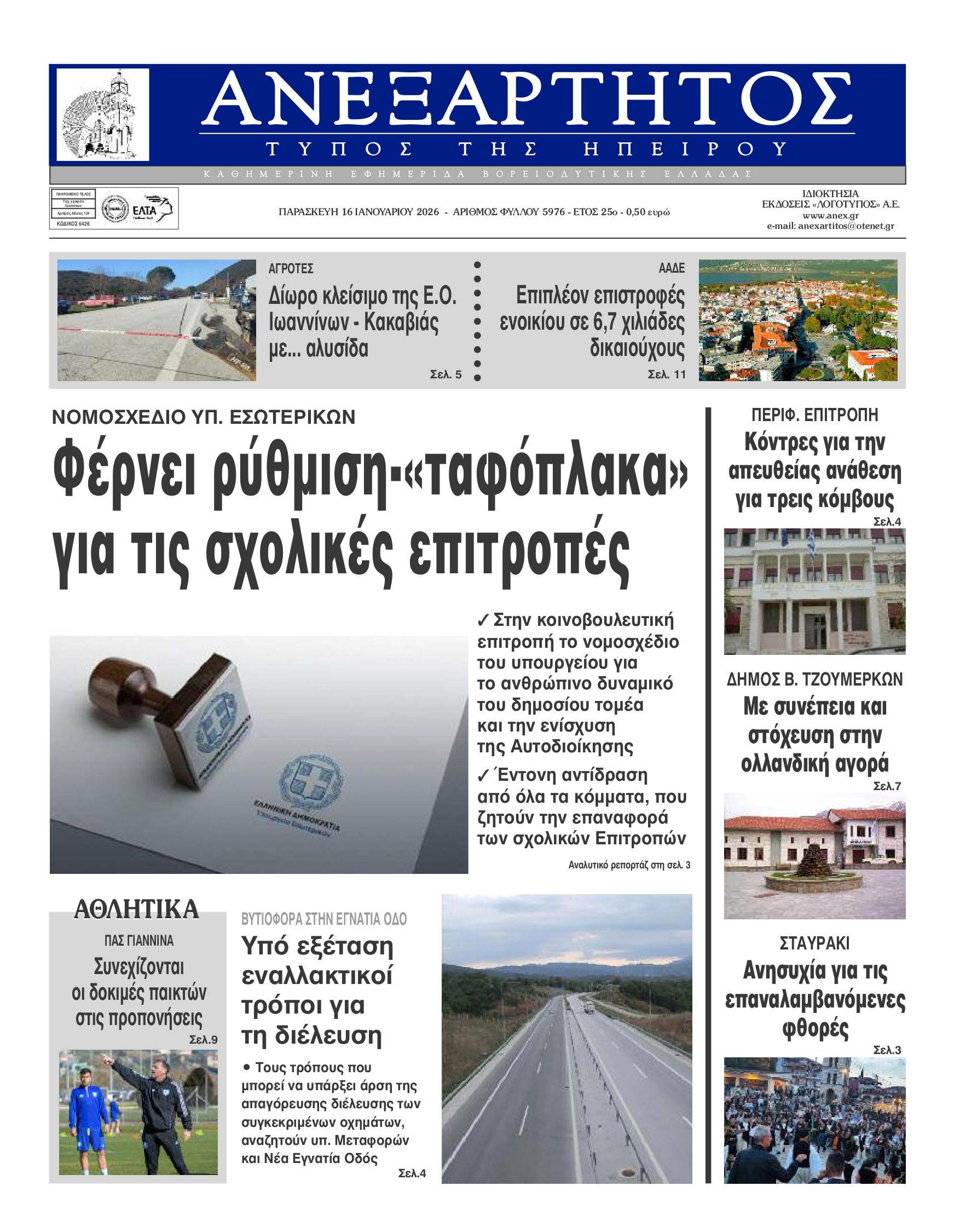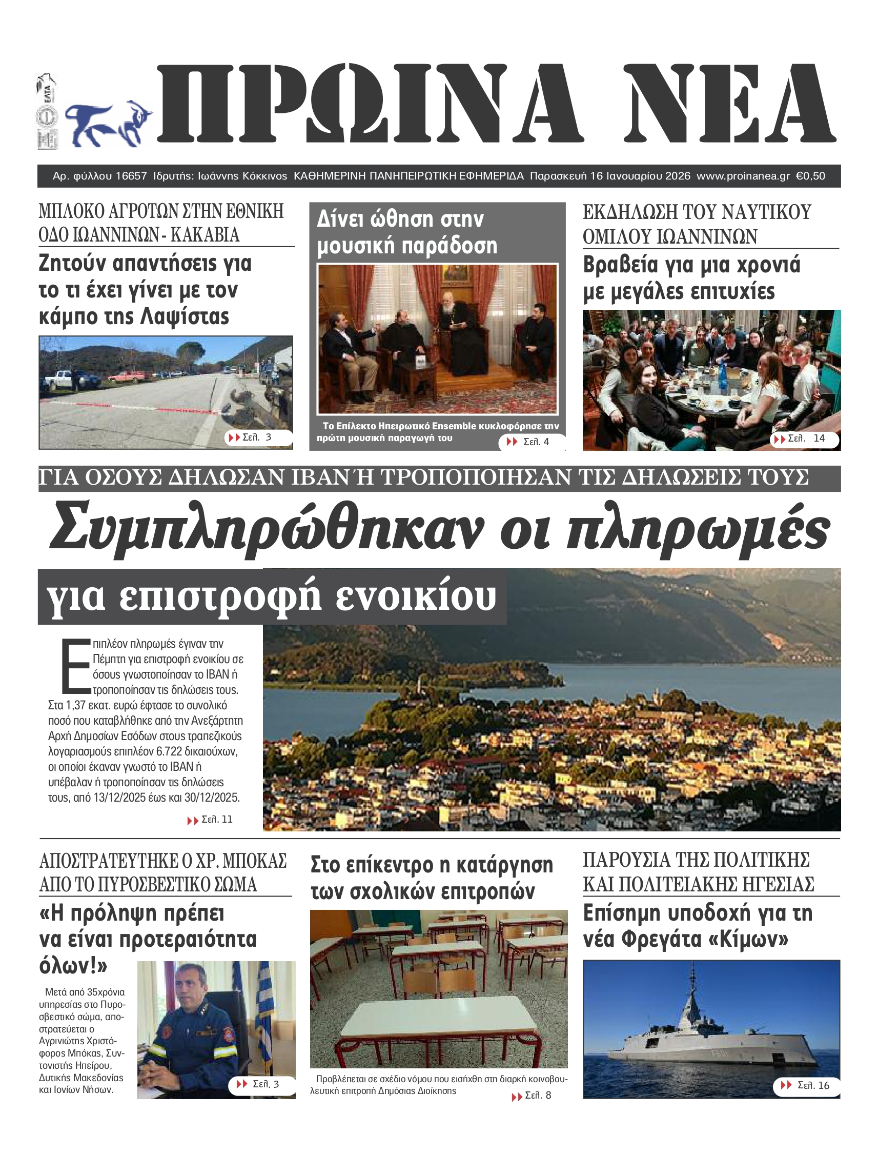 ΑρχικήTOP STORIES TOP STORIESΗΠΕΙΡΟΣ Τα πρωτοσέλιδα των γιαννιώτικων εφημερίδων 16.01.2026 0 FacebookTwitterWhatsAppEmailΤυπώνωViber Διαβάστε στα πρωτοσέλιδα των γιαννιώτικων εφημερίδων Παρασκευή 16-1-2026 TagsΓΙΑΝΝΕΝΑΓΙΑΝΝΙΩΤΙΚΕΣ ΕΦΗΜΕΡΙΔΕΣΕΙΔΗΣΕΙΣΕΠΙΚΑΙΡΟΤΗΤΑΕΦΗΜΕΡΙΔΕΣΗΠΕΙΡΟΣΙΩΑΝΝΙΝΑΠΡΩΤΟΣΕΛΙΔΑ FacebookTwitterWhatsAppEmailΤυπώνωViber Προηγούμενο άρθροΠΑΣΟΚ – ΚΙΝΑΛ -Ο πρωθυπουργός παρουσίασε στους αγρότες ένα έωλο «success story»Επόμενο άρθροΤα του Καίσαρος… ΣΧΕΤΙΚΑ ΑΡΘΡΑ Τα πρωτοσέλιδα των γιαννιώτικων εφημερίδων ΗΠΕΙΡΟΣ 15.01.2026 Τα πρωτοσέλιδα των γιαννιώτικων εφημερίδων ΗΠΕΙΡΟΣ 14.01.2026 Τα πρωτοσέλιδα των γιαννιώτικων εφημερίδων ΗΠΕΙΡΟΣ 13.01.2026 Τα πρωτοσέλιδα των γιαννιώτικων εφημερίδων ΗΠΕΙΡΟΣ 11.01.2026 Τα πρωτοσέλιδα των γιαννιώτικων εφημερίδων ΗΠΕΙΡΟΣ 09.01.2026 Τα πρωτοσέλιδα των γιαννιώτικων εφημερίδων ΗΠΕΙΡΟΣ 08.01.2026 ΣΤΗΝ ΙΔΙΑ ΚΑΤΗΓΟΡΙΑ Σε αναζήτηση εναλλακτικής για τα βυτιοφόρα στην Εγνατία ΗΠΕΙΡΟΣ 16.01.2026 Ενημερωτική δράση στο ΚΗΦΗ σε συνεργασία με το Κέντρο Πρόληψης «ΣΧΕΔΙΑ» ΗΠΕΙΡΟΣ 15.01.2026 Προβληματισμός για τους βανδαλισμούς στο Σταυράκι ΗΠΕΙΡΟΣ 15.01.2026 Με ελαφρά τραύματα 77χρονη μετά από πυρκαγιά σε κατοικία στη Μηλιά ΗΠΕΙΡΟΣ 15.01.2026 Η ΚΕΔΕ ζητά αναστολή κατάργησης των Σχολικών Επιτροπών ΗΠΕΙΡΟΣ 15.01.2026 Άρτα: Ταυτοποιήθηκε αλλοδαπή για αγορές με απολεσθείσα τραπεζική κάρτα ΗΠΕΙΡΟΣ 15.01.2026 ΜΗ ΧΑΣΕΤΕ Σε αναζήτηση εναλλακτικής για τα βυτιοφόρα στην Εγνατία Νωρίτερα οι συντάξεις Φεβρουαρίου – Αναλυτικό πρόγραμμα ανά Ταμείο Άνοιξαν το παράθυρο του διαλόγου με την κυβέρνηση Το δύσκολο και χρονοβόρο έργο της αποκατάστασης «Έρχεται ο θάνατος των χωριών…» ΔΗΜΟΦΙΛΗ Σε αναζήτηση εναλλακτικής για τα βυτιοφόρα στην Εγνατία Τα του Καίσαρος… Ξημέρωμα στην «καλύβα» πριν ξεκινήσει το κυνήγι