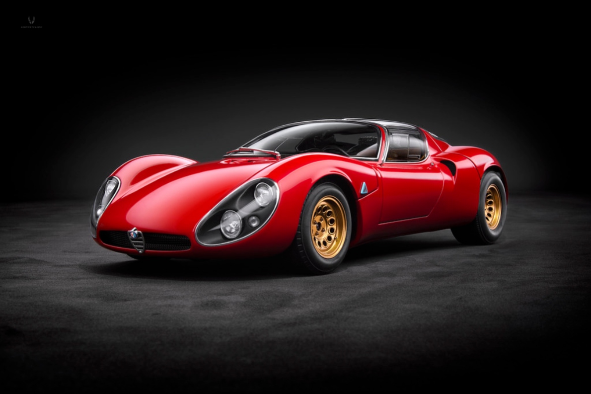 Η έκδοση δρόμου της αγωνιστικής Tipo 33 της Autodelta, με αλουμινένιο αμάξωμα σε σχέδιο του Franco Scaglione, 2λιτρο V8, 230 άλογα και 6άρι κιβώτιο (όπως στην αγωνιστική 33) κατασκευάστηκε, στην Carrozzerria Marazzi του Μιλάνο, για να κάνει, υποτίθεται, την αγωνιστική τεχνογνωσία της Alfa Romeo «προσιτή» στο κοινό. Εντάξει, μπαίνεις μέσα με κόκκαλο (για να βγεις με εξολκέα), αλλά θα την αγόραζες, λέμε τώρα, μόνο και μόνο για να τη βλέπεις.