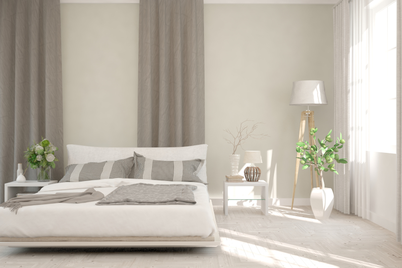 Φροντίστε πάντως να μην είναι πάρα πολύ έτσι ώστε κάθε φορά που θέλετε να πάτε για ύπνο να μην κάνετε υπερπροσπάθεια για να βρείτε…στρώμα. Όσον αφορά τα κλινοσκεπάσματα επιλέξτε έναν χρωματικό συνδυασμό που εξασφαλίζει ήρεμη ατμόσφαιρα. Εμείς προτείνουμε λευκό και γκρι. Άλλωστε πρόκειται για έναν συνδυασμό που οι λάτρεις της μίνιμαλ διακόσμησης, επιλέγουν σταθερά για την κρεβατοκάμαρά τους.