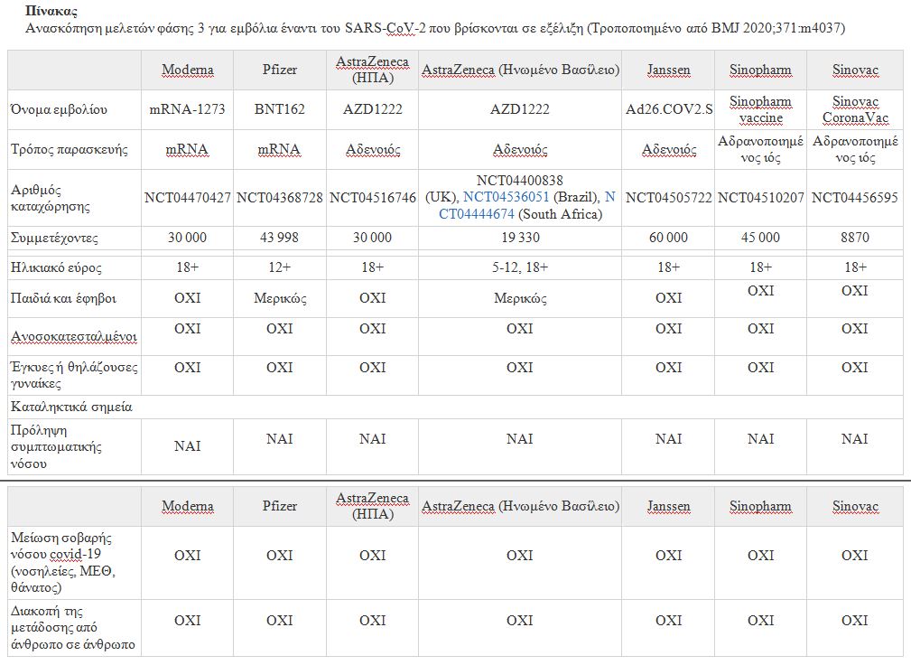 Αυτή τη στιγμή πάνω από 42 εμβόλια βρίσκονται σε κλινικές μελέτες σε ανθρώπους και 10 βρίσκονται σε μελέτες φάσης 3.