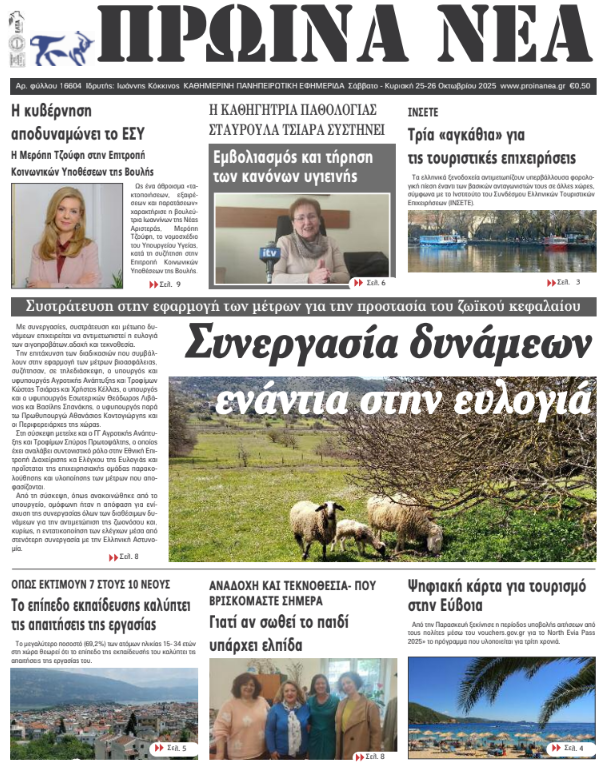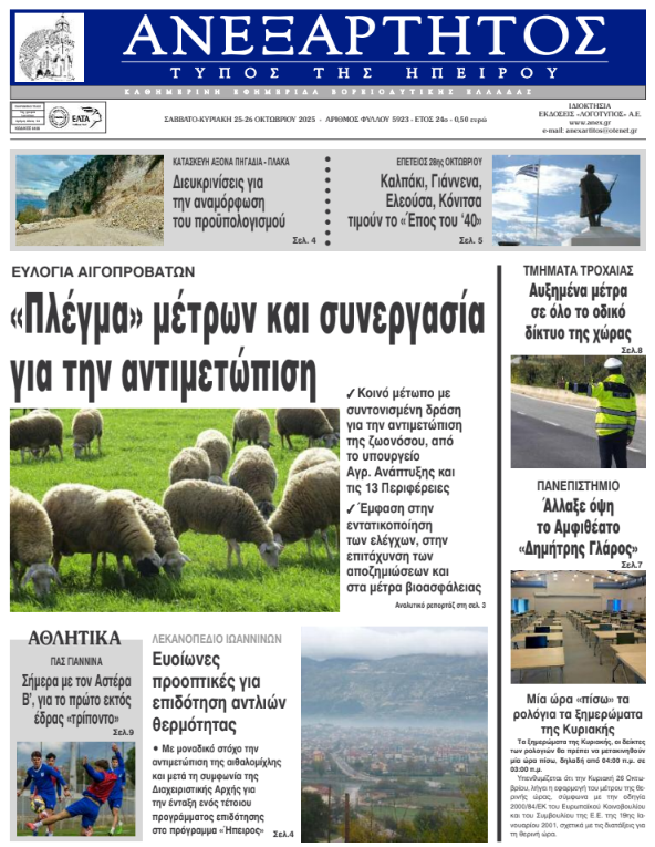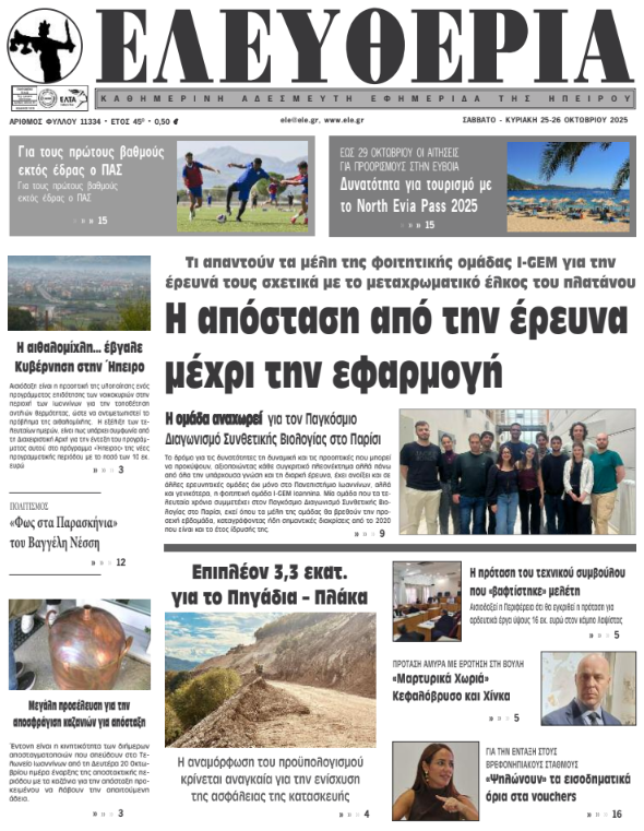 Διαβάστε στα πρωτοσέλιδα των γιαννιώτικων εφημερίδων 25-26 Οκτωβρίου 2025